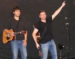 Then we were introduced to the two lads who would take us through the rest of the evening James Hickman and Chris Quinn, apparently in a past life they were known as The Badgers but have now changed to the much more imaginative name of Hickman & Quinn I wonder where they got that from? Two pairs of blue jeans two black tee shirts one razor between the two of them and a pair of Martin’s and off we went into the first set, an excellent mixture of Blue Grass, Django Reinhardt and Stephan Grappelli (I loved their interpretation of Minor Swing) Dylan and many more, every tune was spell binding. When either of them was playing lead, they seemed to go into a trance like state gazing into the far distance for inspiration and it obviously worked because their guitar playing was top draw.