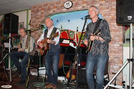 album "Roll On". Whilst taking the majority of songs from later years of the bands existence, the beautiful ballad "Silver Coin", penned by Hiscock for his wife Denise, took the audience back to the early seventies; the only song played from the band’s early days in the current set. "Thief In Your Heart" opened the set with a perfect blend of three vocals showed the audience what a treat the night was going to be. "Lonely Waters" followed and although by their own admission they were not a chorus band, the Woodman choir didn’t take long to find a sing along part, much to the trio’s delight. "Fields Of France" told the story of men going across the channel to war. A Morter penned song which was conceived in 2015 to commemorate the 200 year Battle of Waterloo Anniversary and finished the following year when it was the 100 year anniversary of the Somme. Trevitt’s mandolin playing adding to the piece. "Ain’t Nobody's Business" brought a touch of blues to the set, a Taj Mahal inspired song written by Hiscock during lockdown got the feet tapping and the audience singing along but it was the closing song of the first set that rounded out a wonderful display of musicianship. "Roll On", the title track of the new album and inspired by Woody Guthrie could be described as pure class. A song that Mark Knopler would have been proud to call his own. After the break "Clear Lake", once again had the audience singing along, a beautiful song written about the ’59 plane crash and Buddy Holly. The song not needing any introduction when ending with the Holly Classic "It Doesn’t Matter Anymore". The only cover of the set followed. Buddy Holly’s "Everyday" and the falling apart Glockenspiel which was a wonderful moment of the night. A debut of said instrument at the Woodman by all accounts. "Breaks Me Up Every Time" was a Morter penned tribute to his friend and fellow musician, Gerry Donahue. An old song recorded for the new album and a new ending that was almost right. Another new outing in the set was "Mendips", written about the anonymous return of John Lennon’s house name plate after the initial theft some twenty years earlier. A song that could easily have sat on a Beatles album. "Humber and Tyne" rounded the set off. A song about the BBC shipping forecast and inspired by Lonny Donigan. Trevitt’s mandolin again adding a Lindisfarne flavour to the song which is certainly no bad thing. A song to finish why they all started. The calls for more proved what a privilege it had been to see a group so on top, meaningful lyrics and superb crafted songs that felt as though they were being played for each audience member personally. The encore of "Broadway Lullaby" rounded the night off perfectly. Dick Woodhouse opened up the night with six stunning songs of frivolity and fun, impeccably delivered as always. To go on stage ’cold’ and play songs of this complexity is something special and very few would manage to play so well. Opening with Do like to be beside the seaside, who knew there were so many verses of such a famous chorus. A couple of Jake Thackery songs, "Scallywag" and the "Hair Of the Widow Of Bridlington" were played superbly, by Dick’s own admission there are a lot of words in the latter and there really are a lot of words to fit in. I don’t think any were left out. "Sally Wheatley" rounded Dick’s all too short set off. A Woodman favourite to warm up the vocal cords for the headliners. |