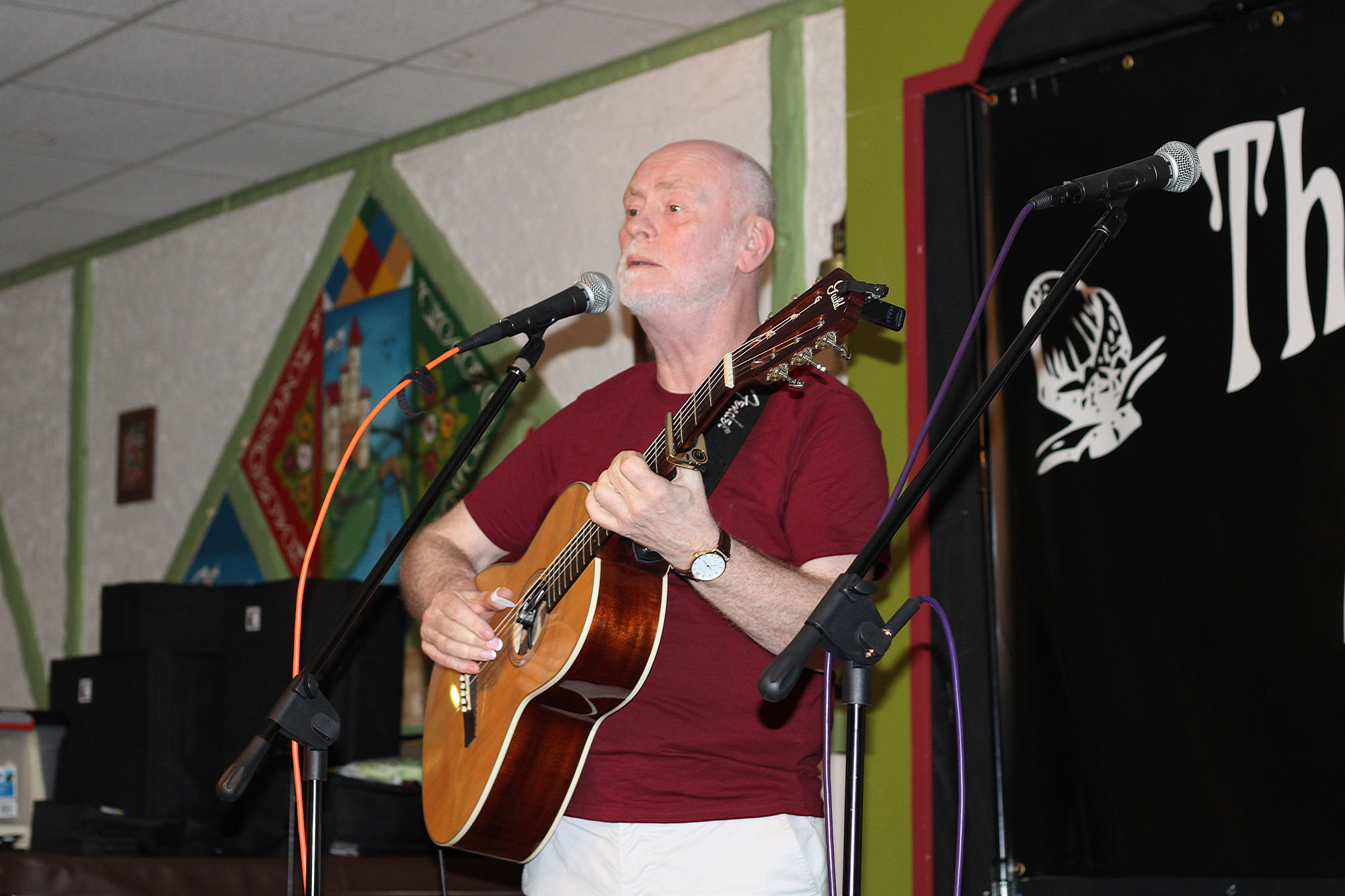 Huw Williams 12 05.23 Hi everyone Woody here again with a review of another fabulous night at the Woodman Folk Club; and as the chimes of Left Bank Two by the Noveltones faded into the distance the evening was opened by our MC, Chris Irving, who was in a particularly buoyant mood. He was standing in for MC Bryn who regrettably had contracted covid along with a couple of other people from our usual audience who I know were looking forward to seeing tonight’s guest. Huw, originally with his duo partner, Tony Williams, now no longer playing, has been on the folk scene for many years and has appeared with many of folk’s most famous names during that time. He is one of Wales’s foremost song writers and can claim Fairport Convention as one of the many exponents of his work. As a solo artist Huw has appeared at the club on one previous occasion in November 2021, when regrettably I missed him. I knew from several other club members that Huw is someone I should not miss, but no one ever actually said more about him than that. Then again , my fault, I never asked. I was mildly surprised therefore when following his introduction, he took to the microphone and without a word played two songs straight off. It was only after the second of the two “Jack Of Kent” that he spoke to us and the evening took off. Over the two sets he performed 14 songs (or 15 if you count the encore which he assured us he would not be doing), many of which I did not know and since I forgot to ask him for his set list at the end, I perhaps never will. I did however recognise the beautiful “The Summer Before The War” and Rosemary’s Sister”. I also noted “Days Like These”; “Don’t Stay Down”; “Self-Indulgence” and “Mother’s Day”. I am used to artists chatting between songs mostly to announce the title or explain what it is about, but Huw is totally different from this. His “patter” was more like a comedian's stage act and had the audience in stitches from start to finish. A recurring theme was a survey he purported to be taking for his media support, which consisted of his completing a form on his clipboard to determine the age of the audience. It’s surprising how many lines from TV adverts we remembered from the 60s and 70s. He seemed happy with the result. Under the table he kept a cardboard box filled with various objects, a “Barbie” style head replete with blond hair, two small tankards with Welsh dragons on, a crystal sugar bowl and to complete the set a doily on which to put them, all of which were said to be his mother’s. This backed up a wonderful story about his mother’s radiogram. You really do have to be a certain age to truly appreciate it. (And the survey said we were). The song “Self-Indulgence” showed his love of musical theatre during which we sang with him the complete stage version of the song “Oklahoma”. I hadn’t realised how much there was to it and we knew it all. Lyrics from “West Side Story” was sung to a Jake Thackray tune, and it fitted. But the highlight of the whole evening for me was Huw Welsh clog dancing to finish the first set and the audience singing a short refrain in Welsh to Huw’s Welsh verses. I can sing it but I can’t spell it. I wish I could write more but I have to finish somewhere. Needless to say I shall definitely be there the next time he appears at the club. And I recommend anyone reading this to do the same. The evening was opened by in very much in form Velvet Green. Five glorious songs from the pen of Paul Matthews - Keith Donnelly – Chris While and Julie Matthews (no relation) stand out. Their spot climaxed with Paul’s rendition of the David Essex song “You Kept Me Waiting” from “Stardust”. Almost rock ‘n roll. A great start to the evening. And so, another evening came to an end and the audience wended their way home to return another day. I shall conclude as normal by saying, A Wonderful Night Was Had by All. Here’s to The Next One. * Notes taken by Les Jones, who also typed up the review, but the views expressed are those of Woody, the club mascot. |