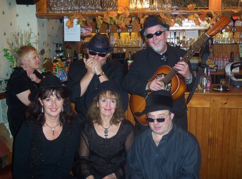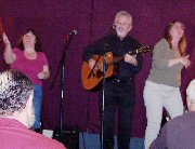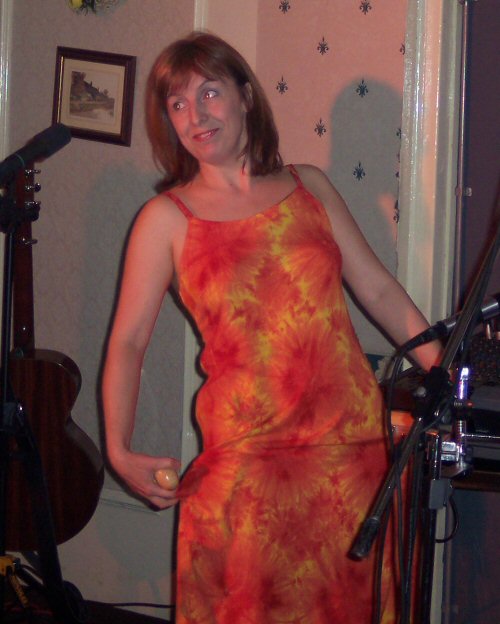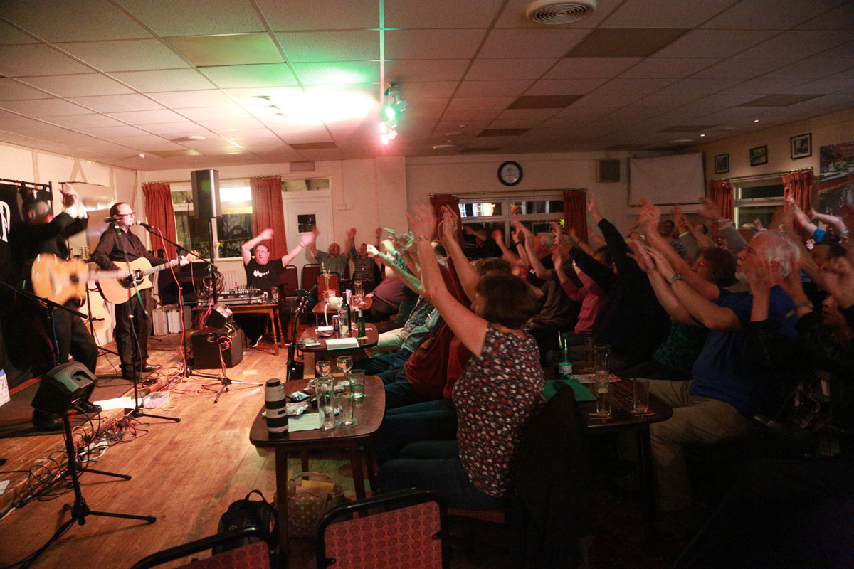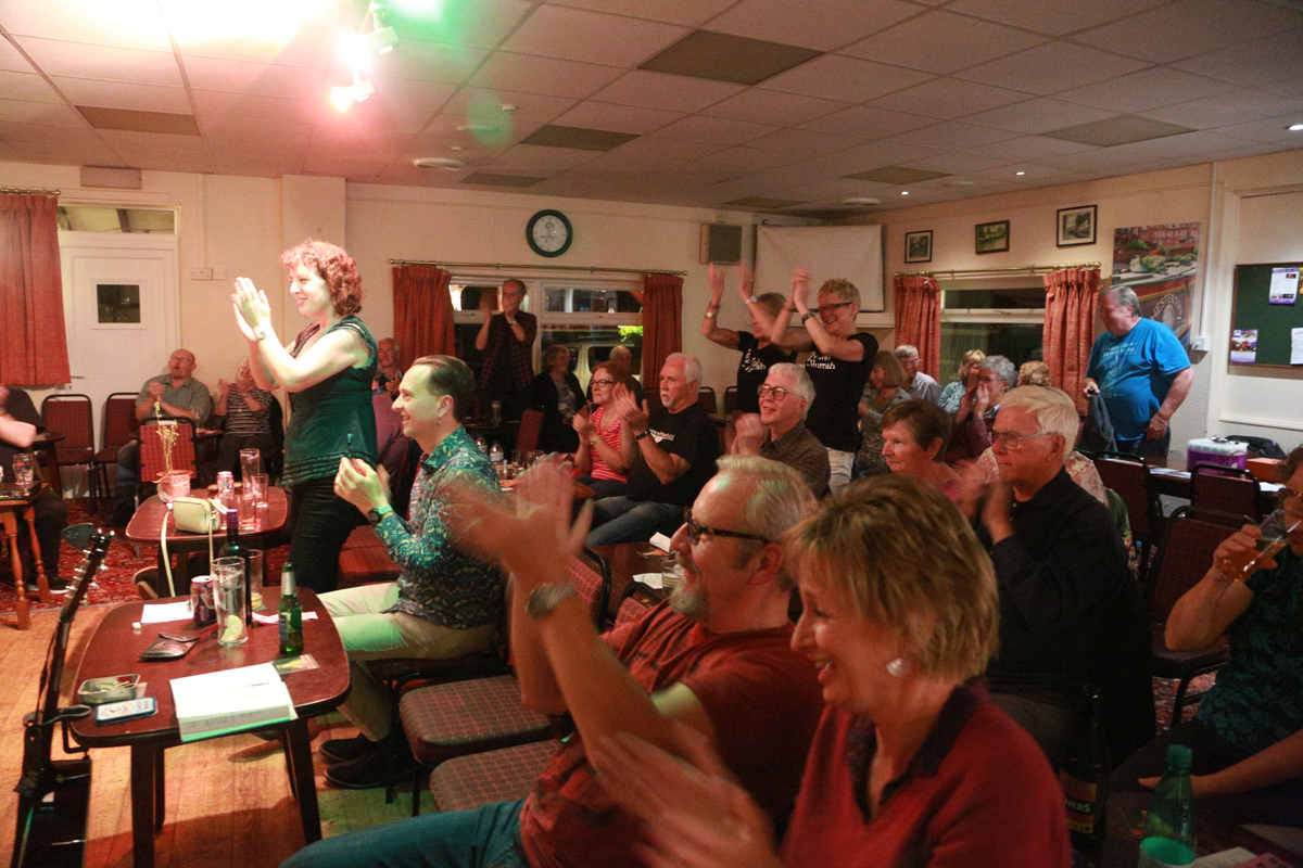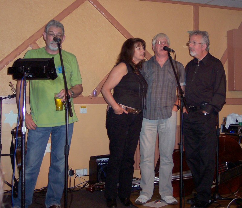 May 2014 Photoshoot at the Woodman. Debby and Derry on stage with Miranda