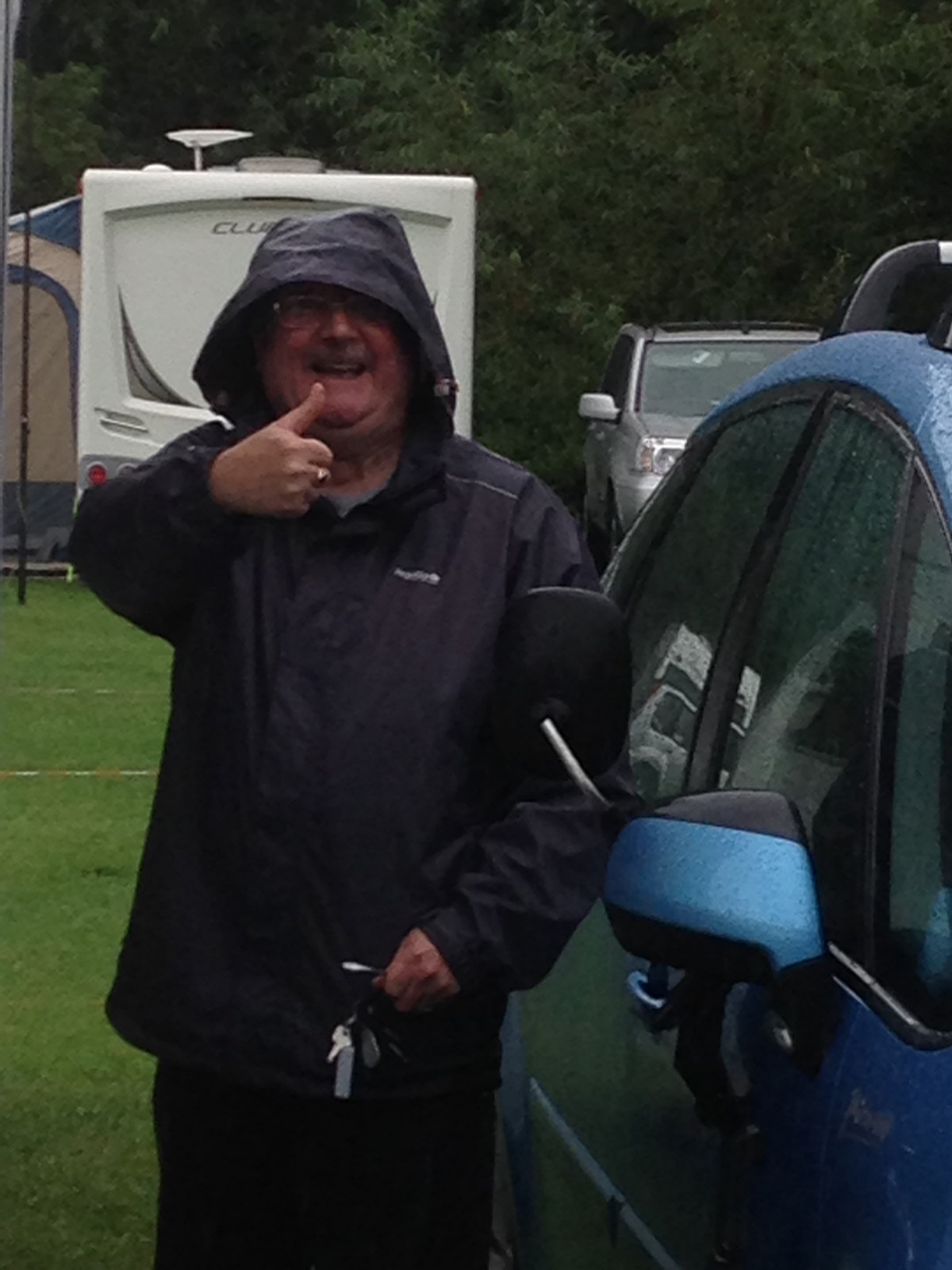 August 2105: Derry keeping cheerful in the rain at Moira Furnace Folk