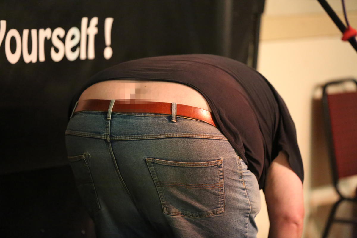 January 2018 - Derry enthusiastically modelling some lingerie in support