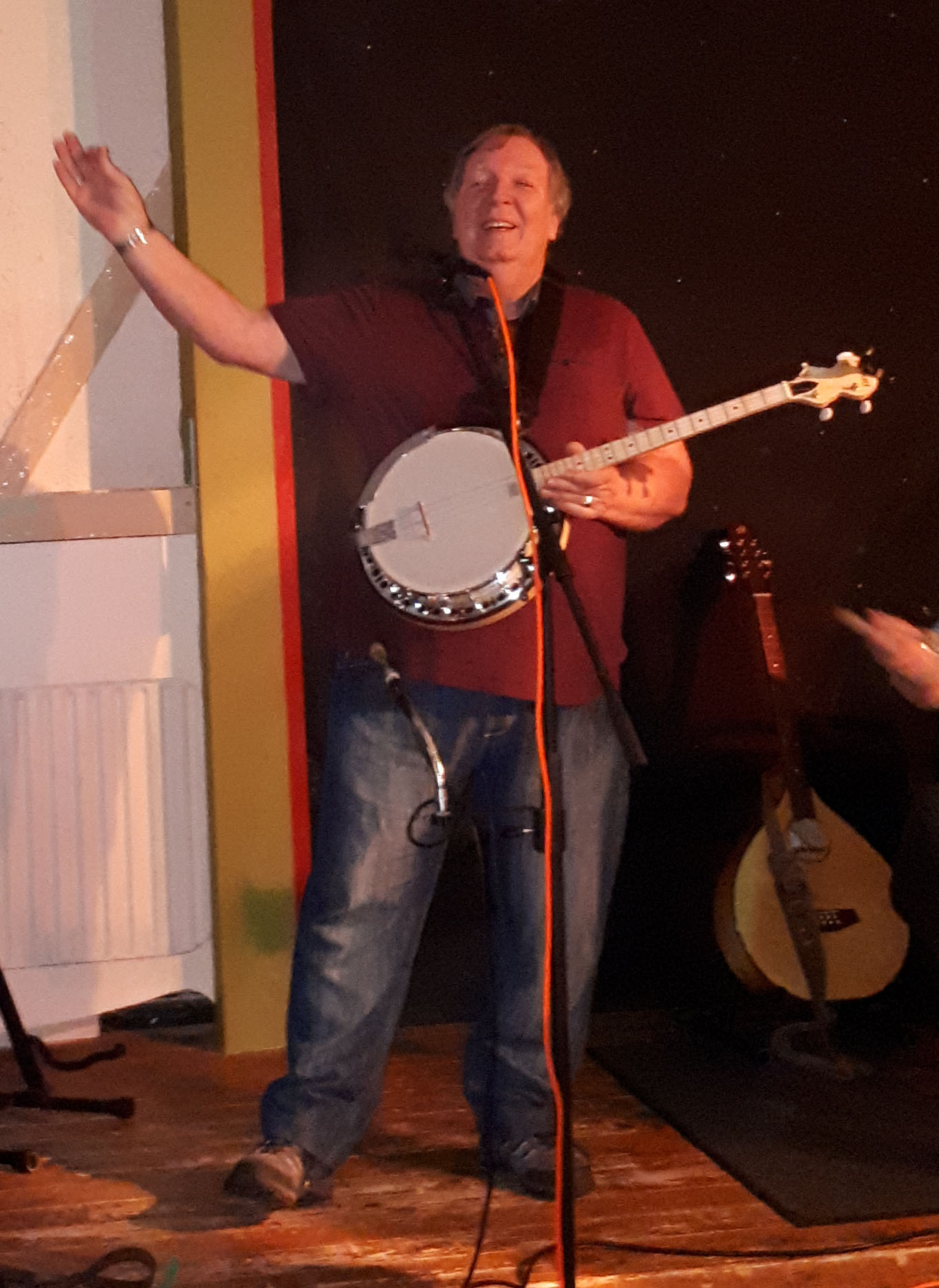 March 2018 - Rob demonstrating that it is possible to hold a banjo and
