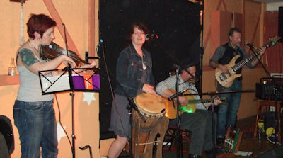 Their music brings together tribal rhythms, slide guitar, harmonica, and excellent vocals by the whole band. At the Woodman we were treated to more of the same and with encouragement by them some additional percussion from the audience. The entire night was pure indulgence with everyone enjoying themselves.