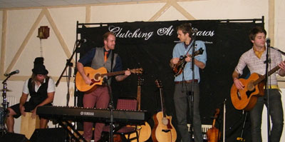 Jake Mahal Having first heard this band at an open mic night, I was pleased when Debby said that she had booked Clutching at Straws for a full guest night. They are a group of four lads playing fourteeen different instruments. Their own upbeat and lively music resulted in a good night, and I would willingly pay to see them perform again. Support was provided by Keith Judson and Bryn Phillips. |