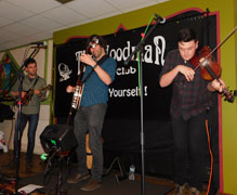 has. The evening was kicked off by club regulars Velvet Green with the Ewan MacColl classic Schooldays Over followed by Paul’s composition What Shall We Sing for The King. Dick Woodhouse forsook his recent habit of playing comic songs and returned to traditional music. Lovely Joan – played on guitar. Just as The Tide Was Flowing – a song he learned from Tony Rose – was played on concertina. By coincidence Dick bought his first concertina from Ciaran Algar’s dad about forty years ago. Bryn Phillips provided the after-interval songs. When Pacquiao Fights Again and I Love the Black Country. I had several comments following last week’s review from people who were pleased that I mentioned the raffle, and would I include it more often. Sorry to disappoint you but no. The Dan Walsh Trio comprise Dan himself banjo and guitar; Ciaran Algar fiddle guitar and banjo; Nic Zuppardi mandolin and guitar. Each are successful musicians on their own. As a trio they are outstanding. They blend together musically and jell together as a bunch of friends thoroughly enjoying themselves playing singing and joking their way through two superb sets. The banter between themselves was witty and contained the occasional “insult” about constant tuning of banjos but strangely lacking in the expected torrent of banjo jokes. Why do banjo players never play Hide and Seek – because no one looks for them. There was an interval of several minutes of cheeses puns which I will not recount as I didn’t have chance to write them down. Don’t Cheddar tear if you Camembert it I’ll Caerphilly move on. Songs/Tunes included: • The Light of Day • Life on the Ground • 80 Years of Pleasant Half-Hours. Written for Dan’s Grandfather for whom life was this. • The Suilin • When I’m Back Around • There were other groups of tunes jigs and reels etc in between The second half: • With A Memory Like Mine • Lease of Life • Snow in March – dedicated to Nic’s late stepfather whose birthday it was on the night and was intending to sit on the front row to see the band. • 10 Bells/Dizzy Heights – two reels played on guitar by Dan. • Leave This Land • Whiplash Reel – Indian inspired tunes on banjo which sounded like both a sitar and a drum; Fiddle made to sound like an Indian “squeeze box”. The change of rhythms was magnificent. • The Song Always Stays – written about Glen Mason a singer who I remember as being constantly on Tv when I was a young lad when light entertainment consisted of big bands and “crooners” performing mainly American songs. Dan and Nic came across him in a nursing home in his later years. • Once again there were groups of tunes one of which finished the evening – except of course for the encore • I’m Going to Sleep with One Eye Open from Now On. An old Lester Flatt song which had us all joining in and sent us home very happy. Each week I finish with the same phrase but this week it has a special meaning. Thank you, Dan, Nic and Ciaran. A Wonderful Night Was Had by All. Here’s to The Next One. |