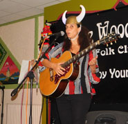 Hi Woody, here again with the latest review. Roughly three weeks out of every month we have guests at the club to entertain us and because of the excellent taste of Debbie and Derry I can honestly say all have been very listenable and entertaining. Amongst these are special guests that we like so much that they are booked regularly. Then there are a select few who we like to think of as special friends of the club. Flossie Malavialle is one such friend. A little like The Beatles in a way she known to us all by her first name only. Bryn mentioned to me at the start of the evening, that although Flossie has been to the club on five previous occasions no one has written a review before. This shall be remedied immediately. It is purely coincidental that the date coincided with Debbie’s 65th birthday, so we were all in party mood before it started. Bryn as MC had dressed in a somewhat striking tuxedo loaned to him by Chris Irving, causing the lights to be dimmed more than usual to avoid glare. Of course, we began with a rousing chorus of Happy Birthday, followed by a three-song set from 3/4 of Nothing To Prove (minus a poorly Rob O’Dell). The silence during the mandolin solos was very restful. After some alteration to the height of the microphone Dick Woodhouse gave us two thought provoking songs, beautifully played and after the interval “your MC for the evening” Bryn Phillips, sang two of his own songs. What happened next is not easy to put down in words. It would be easy to say that Flossie sang, played and told us funny stories but that cannot possibly capture the hilarious atmosphere in which it was conducted. The room was rammed to the rafters – getting to the bar was a nightmare. The interaction between the audience and Flossie, and the audience and themselves sometimes was unbelievable. Flossie said from the outset that she never knew what to expect when she plays the club and she was right. There were times when I felt almost sorry for her trying get through her set and having to deal with the banter between she and individuals, all of whom wanted to share being part of her presence. She will not be surprised to hear that because she is “such a sport” she was set up before the evening to actually mention when she thought it would be right for the audience to play percussion. What she did not know was that when she did, the audience had been primed to bring out various instruments – mainly tambourines which flashed on and off, augmented by a glitter ball in on the side of the stage. She of course, collapsed with laughter. Every song she sang is worthy of a mention. Her guitar playing is simple but appropriate to each tune and her voice so powerful, and so emotive. In no particular order she sang; Kieran Halpin’s Making Up The Miles and Berlin Calling; a lovely version of Pete Abbot’s Almost A Year – which told her he intended to sound French when he wrote it. Tracy Chapman’s Baby Can I Hold You started the first set and Suzanne Vega’s Luka ended it. Eve Cassidy versions of Fields of Gold and I Know You By Heart; Willie Nelson’s On The Road Again triggered the tambourines. There was a discussion around how many of us knew that Make You Feel My Love was a Bob Dylan song, which ended in a show of hands vote. There was a little bit of “get my own back”, when Flossie did not know that Till There Was You was not a Beatles original but written by Meredith Wilson for The Music Man. (She’s too young). I however did not know 4 Non-Blondes What’s Up but everyone else must have because they joined in the chorus. Personal favourites of the evening were both French songs – in French, of course – La Foule (The Crowd), a haunting song from Edith Piaf dating back to 1957 and La Boheme, made famous by Charles Aznavour. As If this was not enough, Flossie “finished” with a brilliant version of Hey Jude which had the whole audience singing and clapping and went on for almost as long as the original. Her beautiful Gibson guitar was put on the stand and we were treated to an encore – the audience clapped on one beat stamped a foot on the other beat in time with Flossie and a rousing version of Janis Joplin’s Mercedes-Benz. There was rapturous applause. I know that this has been a rather long review, but it was well deserved and had I been able to capture everything that we experienced it could have been much longer. Flossie is taking a year off in 2020 and returning to France. We all hope it goes well for her and I for one hope that we get to see her again. So, once again, this is me, an elated Woody, signing off for this time. And as usual; A wonderful night was had by all, here’s to the next one. Woody. * Notes taken by Les Jones, who also typed up the review, but the views expressed are those of Woody, the club mascot. |