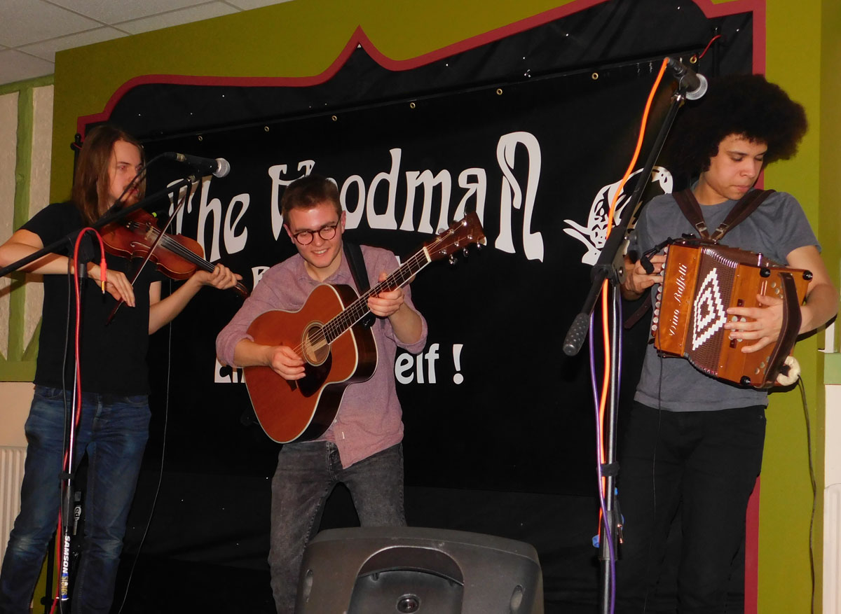 Again a favorite of mine. Then...... They came, they performed, they conquered. Well, that's my opinion and it's my review. From the atmosphere in the room It would be a sure bet that that's the opinion of many others there. Over the last few years I have seen this band several times, in fact they were still all at University when I first saw them, they were fresh faced young men with real drive, since that time they have continued with that same momentum to create a band full of endless energy, wonderful clear harmonies, great songs together with first class musicianship from Lewis on fiddle, now sporting a beard, George on guitar with his dance moves, Cohen on concertina and melodeon and a voice that authentically sounds direct from the 1800's, he has also been nominated for this years BBC 2 Folk Horizon Award (he has my vote). Right from the start the band treated us to a wonderful performance with songs such as, Poor Old Man, Highwayman, Captain Cries All Hands, Death Of Nelson, then several instrumentals to include ...After The Flood, Royal Oak etc. many other songs such as Country Hiring, Away To The South'ard, the long titled...What I Saw In My Dreams As I Slept In My Chair, and many many more. At one time this band could have been seen as being shy but that is the past, as now there is good humored banter with the audience that continued throughout the evening making for a wonderful fun evening out, I think it would be fair to say that Granny's Attic enjoyed it too |