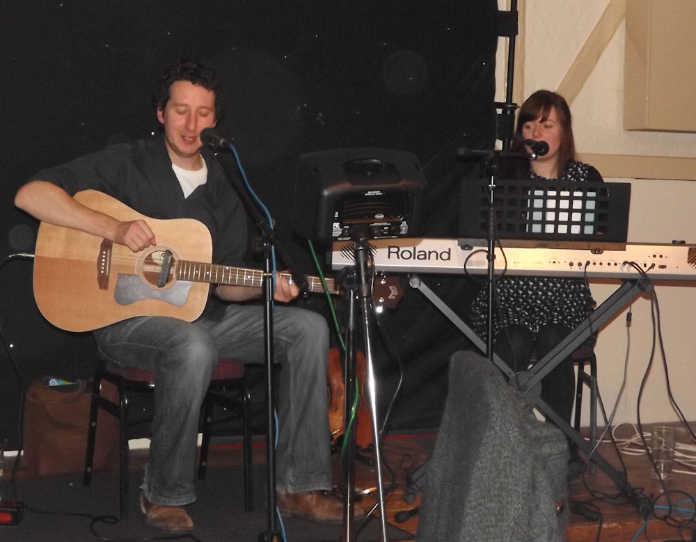 Gren entertained an almost full house, with a blend of Folk, Country ( Dolly Parton - Porcelain Hand) and Blues numbers ably accompanied on several songs by partner Julia Disney on key-board and violin. With excellent guitar playing and vocals throughout, Gren sang about 17 songs; no mean feat considering he was suffering from a cold. Lubricated by medicinal brandy, we were treated to a number of self-penned songs ( e.g. 'A Descent', with some very good harmonica playing ), a few covers ( e.g. 'Last time I saw Richard' - Joni Mitchell) and a novel banjo number (' I am home' ) with an EBO. He linked with a few amusing anecdotes and clearly enjoys what he does. His wolf impressions in 'Whiskey Head', a little bluesy number, were a bit scary though!!