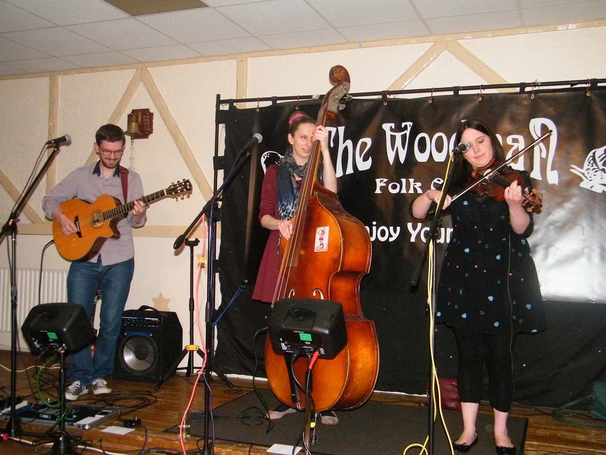 very accomplished trio of musicians. The night started off with our own Velvet Green followed closely behind by "Dick", famous for his Jake Thackeray renditions. Then the stars of the night, JAYWALKERS, whom I feel as musicians are excellent and a very together trio, they treated us to various numbers mostly Bluegrass based tunes and songs such as Wayfaring Stranger, Shady Grove, with tunes such as Brilliancy, Mountain Chicken then others like the wonderfully played Dark Eyes. All three players are as previously said, accomplished musicians, be it the wonderful Mandolin playing of Mike, the beautiful powerful voice and Fiddle playing of Jay or the strong slap Bass playing of Lucy that holds everything together. All three entertained us in a laid back but confident manner, a night I would guess enjoyed by all. |