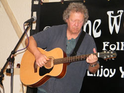 evening. He’d brought two guitars and a banjo with him and several of us were in awe when he showed us his foldable guitar before the evening started. “Look” he said as he clipped it together and all of the loose strings tightened, “It’s still in tune. It’s amazing”. At that moment I knew it would be a good evening as here was a musician who loves his instruments and is happy to chat away about them. He started off with some very nifty guitar work which was the intro to a powerful song “I am The Foe”. He followed this with “I Hate The Rain” the first of several songs from his new album, “The Boatman’s Cure” which he initially dedicated to the people who live on the Somerset Levels and then expanded to the rest of the country, following the wettest February in Britain since records began. Then out came the banjo which Mick Ryan had persuaded him to buy. I used to have a cheap banjo but this is a good one – and it sounded good as well. For once not a single banjo joke from Woodman audience as he gave an excellent performance of "Farewell Nancy", again from his new album. As the evening continued I was impressed by the breadth of the repertoire and musical styles. This included the bluesy “Cocaine Lil” sandwiched within a great version of Angie, Phil Ochs’ “There But for Fortune”, Steve Knightley’s “Exile” and even Benny Hill’s “The Andalucian Gypsies”. One song which stuck in my mind long after the evening finished was George Ward’s “The Boatman’s Cure”. This had a very catchy tune and as Paul said, "the chorus has got a note in it that you won’t get until about half way through the song". He was right, as the note in question was about two tones lower than expected, and this had the effect of lodging it firmly in your brain “The best cure for the river is a bottle of rum”. Another song which stood out for me was Harvey Andrew’s Unaccompanied, to which he provided a perfect banjo accompaniment. This is a song that I’ve always enjoyed, but this version gave it a new sense of desperation and urgency. Paul Downes is rightly regarded as one of the folk world’s finest musicians, as evidenced by the number of musicians and bands he has accompanied over the years, but it was a treat to see him deliver a solo performance. The guitar and banjo playing came over as effortless, and the vocals were crystal clear. As well as the musical performance there was genuine empathy with audience. Support for the evening was provided by Sunjay Brayne, Velvet Green, Barry and Corinne and Your Reviewer, who was also the MC for the night. PS When Paul Downes discovered I was writing the review he asked me whether I would be reviewing the MC. When I said “No” he said “be sure to include a quote from me in the review then. You can say he was Very Good”. That’s too good an opportunity to pass up, so I haven’t. |