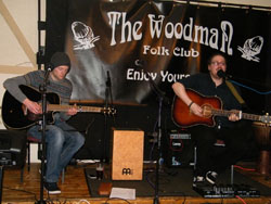 week in and week out? River City Portrait – the Stourbridge based duo of Dan Haynes and Robin Groucutt – took to the stage and were obviously a little nervous. They apologised for this then explained that they had not played together as this duo for over a year as they had been doing other things! It was at this point that I began to get a feeling of some trepidation having been the guilty party who had suggested the band to Deb & Derry on the strength of hearing one track and doing a minimal amount of internet research. Suffice to say that the nervous duo had then become a trio, unknown to them!! I need have had no such worries. From the opening number ‘Stung’, they began to deliver a wonderfully chilled, varied and musically beautifully understated evening of vocal and instrumental proficiency that I for one enjoyed immensely. Individually they both had excellent voices, effortlessly reaching high tenor notes when required which combined with enviable guitar skills was just a joy to listen to. But when they sung in harmony it was simply magical. Comparisons with Simon & Garfunkel were inevitable and became understandable when they explained that Dan is one half of an S & G tribute act called Bookends and Robin works with them too. Hence the lack of recent gigging as RCP. The other obvious influence which was instantly recognisable in their style was Jack Johnson, the horizontally laid-back Hawaiian maestro of cool. Many of their own songs and the way they performed them were very Johnson-esque. They relaxed easily into their set and it wasn’t long before the audience were completely won over. The first half was almost entirely self-penned songs, some of which had an almost latin/samba type feel to them, others gentle ballads and the set was then rounded off with ‘I Am A Rock’ and ‘America’ from the Simon & Garfunkel back catalogue. The second half opened with ‘Rodeo Clowns’, a Jack Johnson number and here they stated that he was a big influence on them. The percussion featured heavily in this one with Dan playing cajon and claves at the same time! More percussion featured in the next song ‘You Come Alive’ with Rob taking to his Djembe. After a couple more they varied the set by each playing two solo numbers, the most memorable of which were Rob’s blistering performance of John Martyn’s ‘May You Never’ and Dan’s equally excellent version of Bert Jansch’s guitar piece ‘Angie’. Dan also acceded to Paul Beddingfield’s request to play ‘Kathy’s Song’, another S & G number. He told us that he hadn’t done this one for a very long time so as an aide memoire he managed to get the lyrics up on his phone which he then promptly balanced in the beer holder on the mic. A completely new take on a music stand I think you’ll agree (!?!) He didn’t need it, it was beautifully sung. Robin announced that it was now just over 5 years since the death of his father, Kelly Groucutt, who was for many years a member of the Electric Light Orchestra, and so for their encore they did a wonderful acoustic version of the classic ELO hit ‘Showdown’. Thus concluded a brilliant night’s entertainment and I’m sure that they will be returning to the club at some future date. We had no Bryn with us this week so support was provided by an extended set from Nothing to Prove and the ever dependable Velvet Green who were in fine form. |