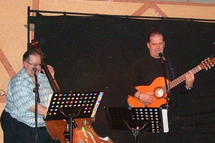 had heard this duo were 'funny' but that could mean anything. However, when they took the floor I knew I would struggle to hold back the laughter. Bob Gessey sings and plays guitar, accompanied by the very talented and very dry John Charnock on double bass. The first song was a hilarious number about going to the dentist. Bob sung about various tricks a person can play on a dentist to make sure they don't inflict more pain than necessary. It would be ungentlemanly to elaborate more but the duo had the audience in stitches from there onwards.